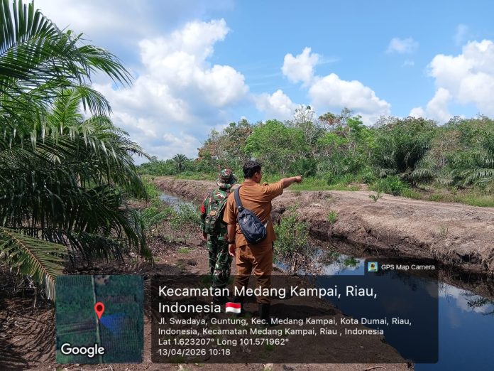 DUMAI,Suryapublik.Com-Upaya pencegahan kebakaran hutan dan lahan terus digencarkan oleh aparat teritorial di wilayah Kota Dumai. Pada Senin, 13 April 2026, Babinsa Kelurahan Guntung Koramil 02/Bukit Kapur melaksanakan kegiatan patroli sekaligus sosialisasi Karhutla di wilayah binaannya.