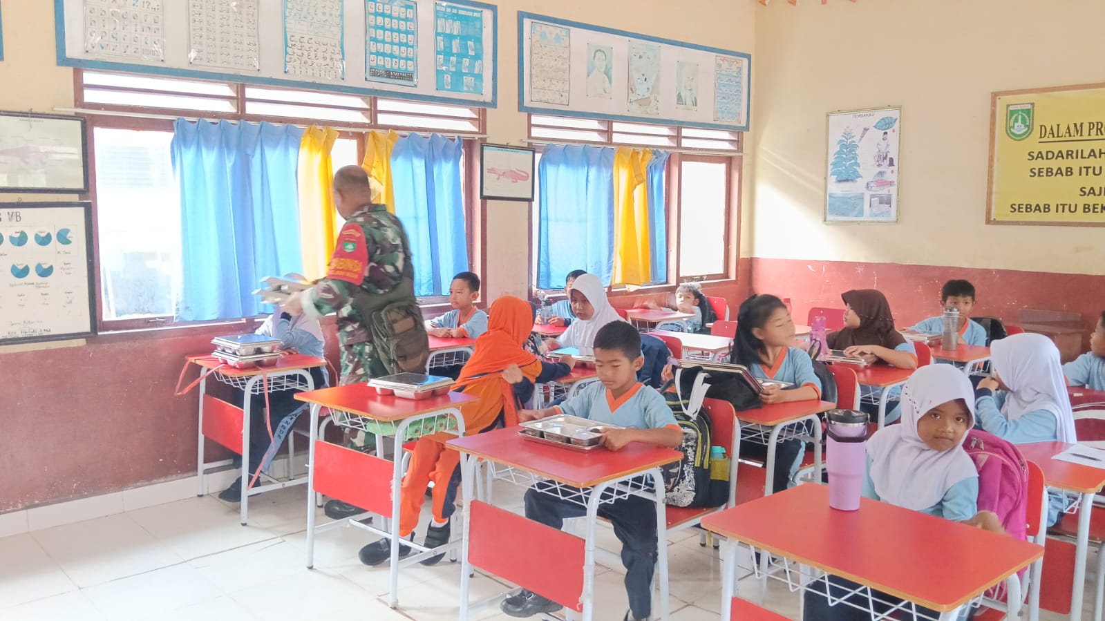 Babinsa Kelurahan Bagan Besar Koramil 02/BK, Sertu Sareh, turut melaksanakan pendampingan dalam kegiatan tersebut. Program ini merupakan kerja sama antara Yayasan Benteng Energi Pangan dan Badan Gizi Nasional dalam mendukung pemenuhan gizi di lingkungan pendidikan.