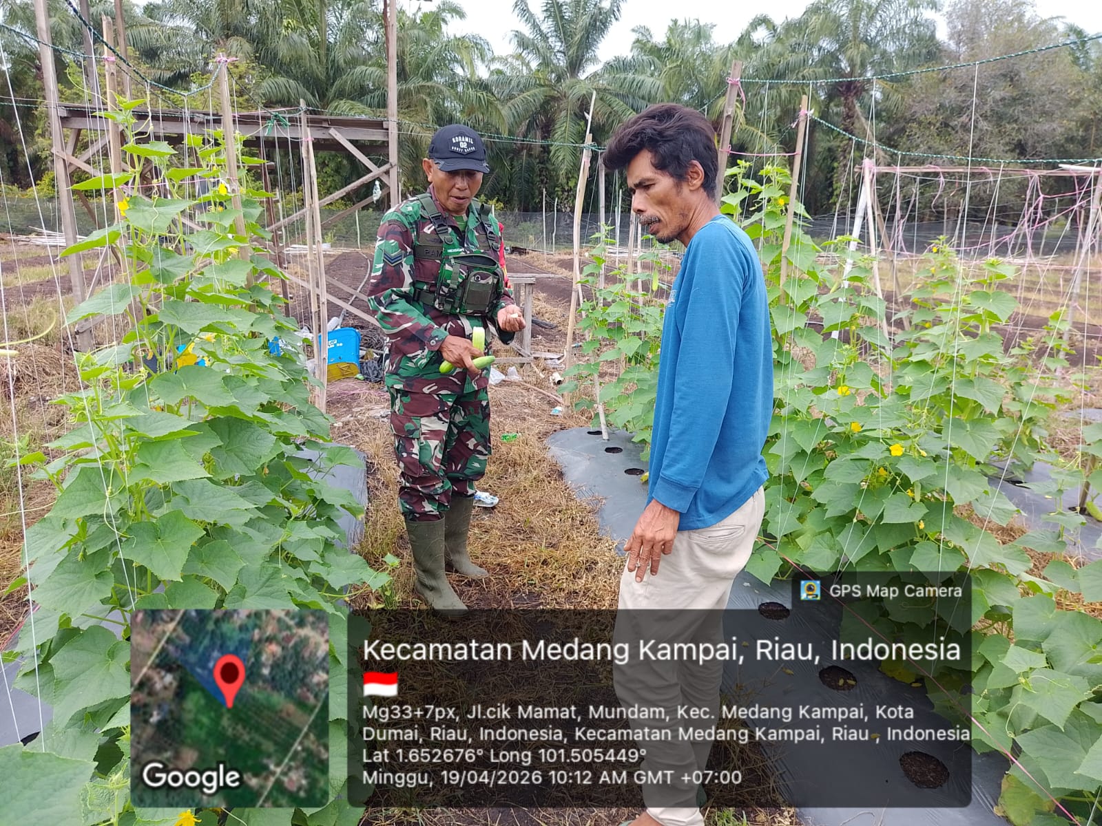 Pendampingan dilakukan oleh Sertu Ramli terhadap warga binaan bernama Ali Pulungan yang mengembangkan tanaman mentimun di lahan miliknya yang berlokasi di Jalan Parit Cik Mamat RT 05, Kecamatan Medang Kampai, Kota Dumai.