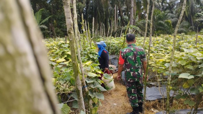 Babinsa turut memberikan arahan serta motivasi kepada pemilik kebun agar terus mengembangkan usaha pertanian yang produktif dan berkelanjutan.