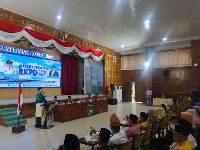 DUMAI,Suryapublik.com-Pemerintah Kota Dumai menggelar Musyawarah Perencanaan Pembangunan (Musrenbang) Rencana Kerja Pemerintah Daerah (RKPD) Kota Dumai Tahun 2027 yang berlangsung di Pendopo Sri Bunga Tanjung, Jalan Putri Tujuh, Kelurahan Teluk Binjai, Kecamatan Dumai Timur. Kegiatan berlangsung tertib, aman, dan lancar hingga selesai pada pukul 10.50 WIB.