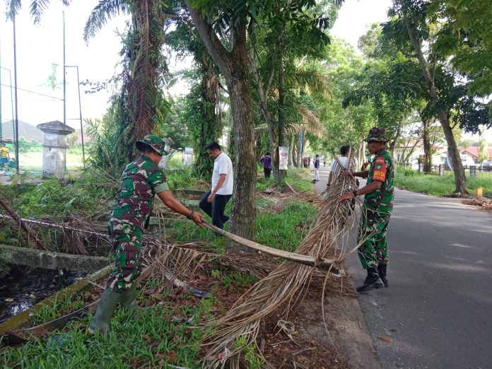 “Gotong royong ini menjadi sarana untuk mempererat kebersamaan antara aparat dan masyarakat sekaligus meningkatkan kepedulian terhadap kebersihan lingkungan,” ujar Babinsa.