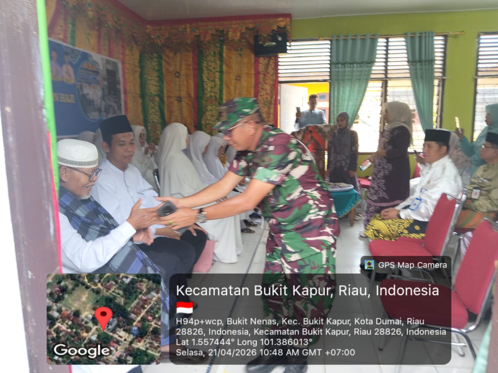 Acara tersebut dihadiri oleh berbagai unsur pemerintah dan tokoh masyarakat, di antaranya Camat Bukit Kapur Ns. Teguh Widodo, S.Kep., MKM., Asisten I Pemerintahan dan Kesra Drs. H. Yunus, Ketua IPHI Kecamatan Bukit Kapur H. Ramlet, serta Danramil 02/BK Kapten Inf Syuar Hendri.