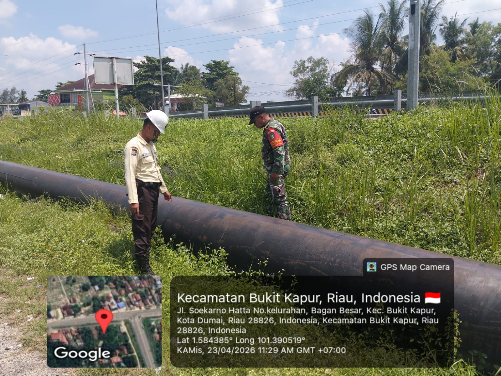 Patroli dilaksanakan pada Kamis, 23 April 2026 oleh Sertu Jumat Desmanto bersama dua personel security PT Pertamina Hulu Rokan, David dan Junaidi. Mereka menyusuri jalur pipa minyak yang berada di wilayah Kecamatan Bukit Kapur, Kota Dumai.