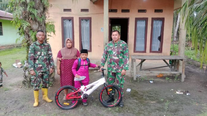 DUMAI,Suryapublik.com-Kepedulian terhadap dunia pendidikan kembali ditunjukkan oleh jajaran Kodim 0320/Dumai melalui kegiatan sosial di wilayah binaan. Pada Jumat, 10 April 2026 sekitar pukul 14.50 WIB, Kodim 0320/Dumai melalui Koramil 03/Sungai Sembilan menyerahkan bantuan satu unit sepeda kepada seorang pelajar sekolah dasar, Khairul Fahmi (10).